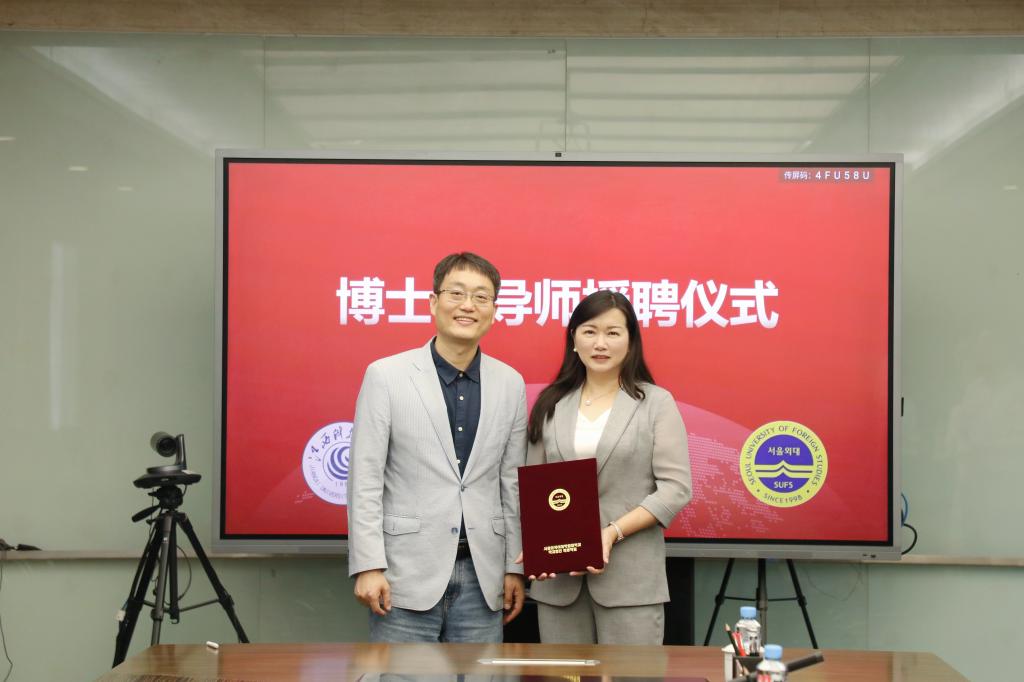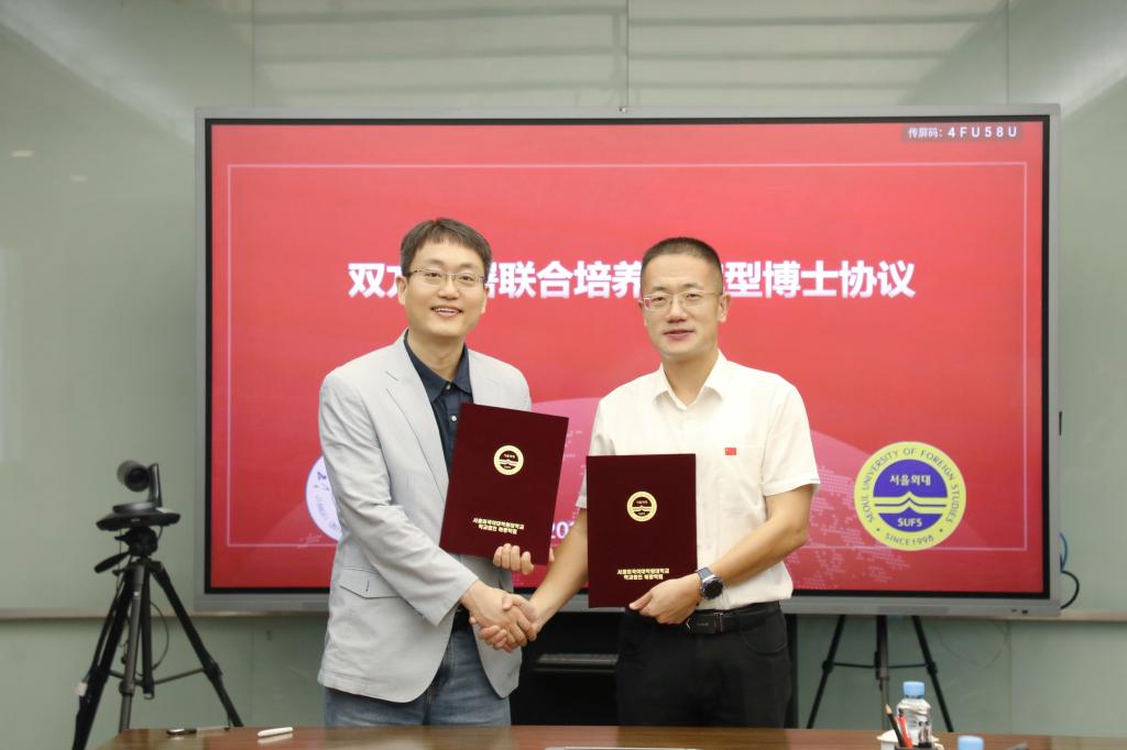 米兰·体育全站APP下载网讯(记者 刘莹)6月16日上午,我校与首尔外国语大学院大学(以下简称:首尔外大)在行政南楼第三会议室举行联合培养研究型博士项目签约仪式。校长张海涛、副校长吕文威,首尔外大国际合作交流处处长芮晟豪出席仪式。经济管理学院、外国语学院、文化与传媒学院、博雅国际学院相关负责人参会。